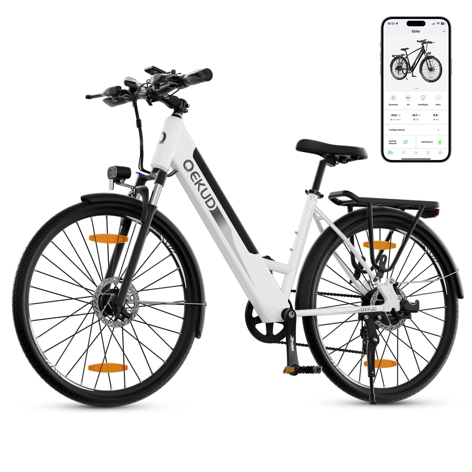 • 【SONSTIGE MERKMALE】: Das E-Bike ist mit Vorder- und Rücklicht, LCD-Display, Mittelständer und einem bequemen Sitzkissen ausgestattet. Der Bordcomputer verfügt über ein LCD-display und eine intuitive Benutzeroberfläche. Sie können ihn auch bequem über die Anwendung steuern – so haben Sie eine bessere Kontrolle über die Tretunterstützung und die Entfernung sowie ein klareres Bild davon, wie schnell Sie fahren und wie viel Akkuleistung Sie haben.