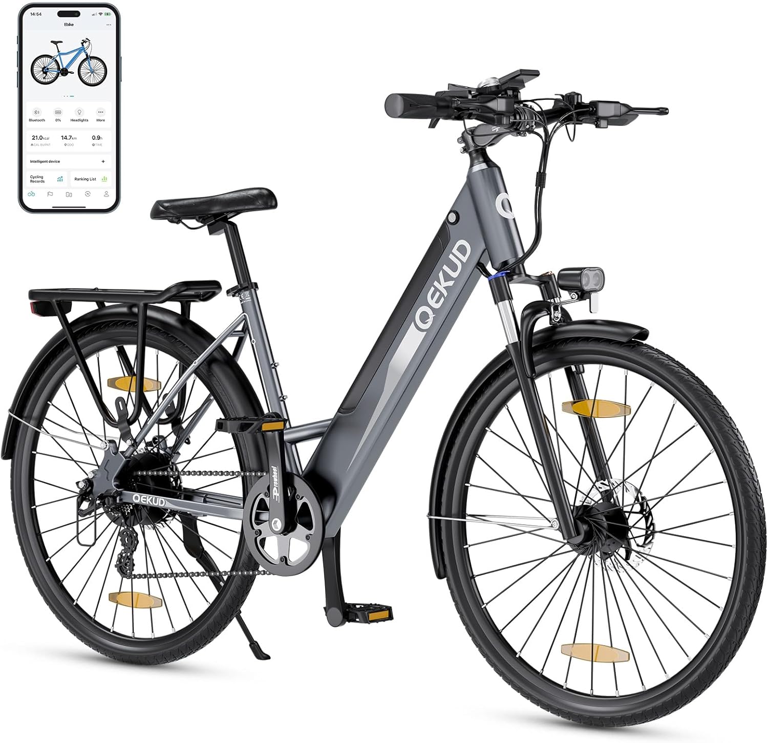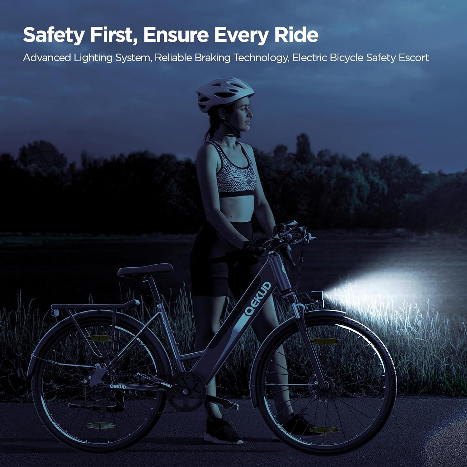• 🚲【Elegantes Step-Thru-Rahmendesign】Mit seinem Step-Thru-Durchstiegsrahmen aus Aluminium ist dieses E-Bike sowohl stabil als auch leicht. Das einzigartige Step-Thru-Design erleichtert nicht nur das Auf- und Absteigen, sondern bietet auch mehr Möglichkeiten für diejenigen, die mit einem höheren Rahmen nicht zurechtkommen, so dass es für den täglichen Pendlerverkehr und die Freizeit geeignet ist.