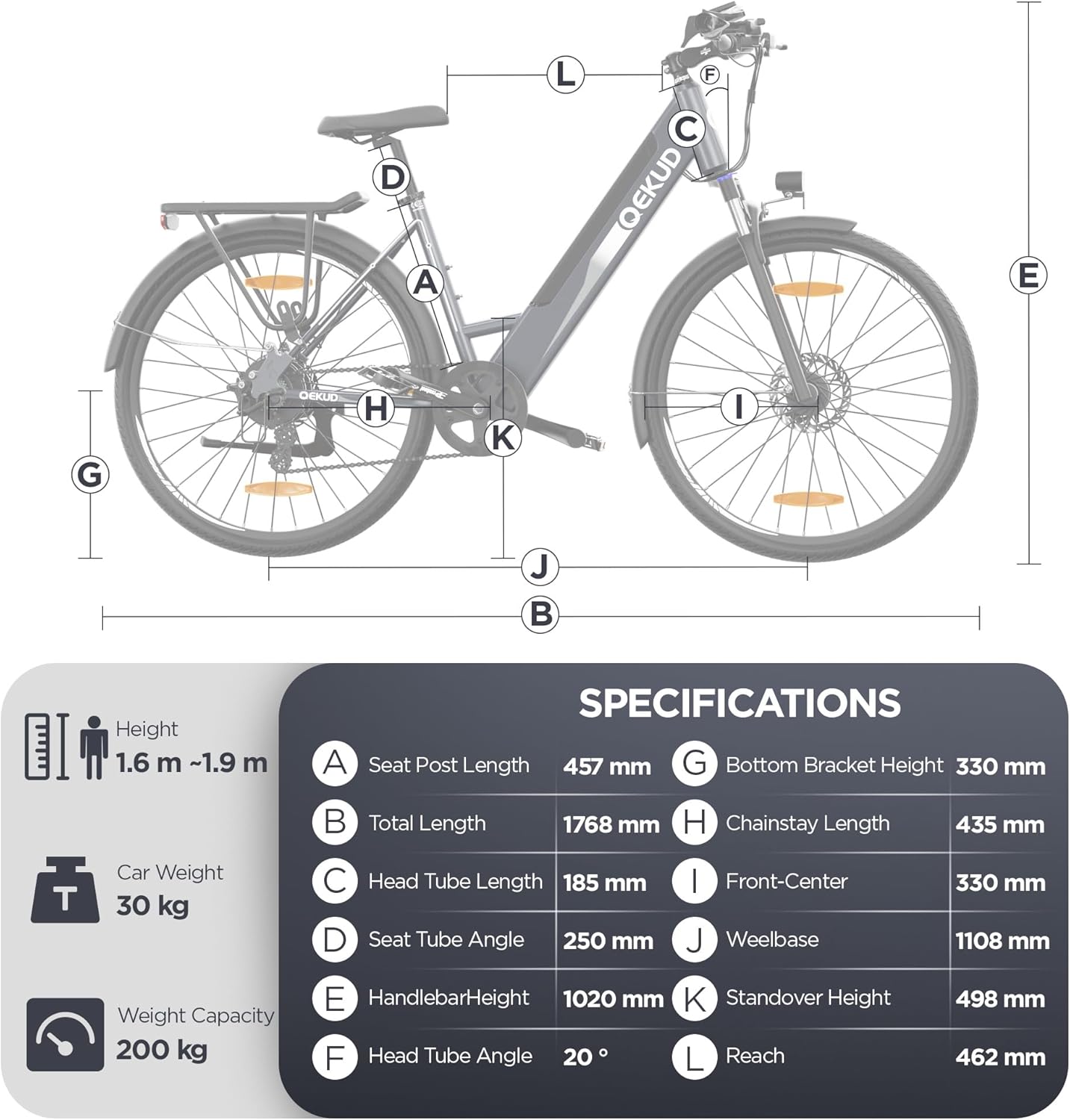 • 🚲【Rundum-Komfort und Sicherheitsdesign】Um ein komfortables Fahrerlebnis zu bieten, ist dieses E-Bike mit einer 26-Zoll-Federgabel und einem Silikon-Sattel ausgestattet, der Vibrationen auf der Straße effektiv absorbiert. Die mechanischen Scheibenbremsen vorne und hinten und die elektrisch unterstützten Bremshebel sorgen dafür, dass Sie schnell und effizient anhalten können, um eine sichere Fahrt zu gewährleisten. Dank der verstellbaren Sattelstütze und des verstellbaren Lenkers ist dieses E-Bike ideal für Jugendliche und Erwachsene mit einer Körpergröße zwischen 155 und 198 cm und einer maximalen Zuladung von 150 kg.