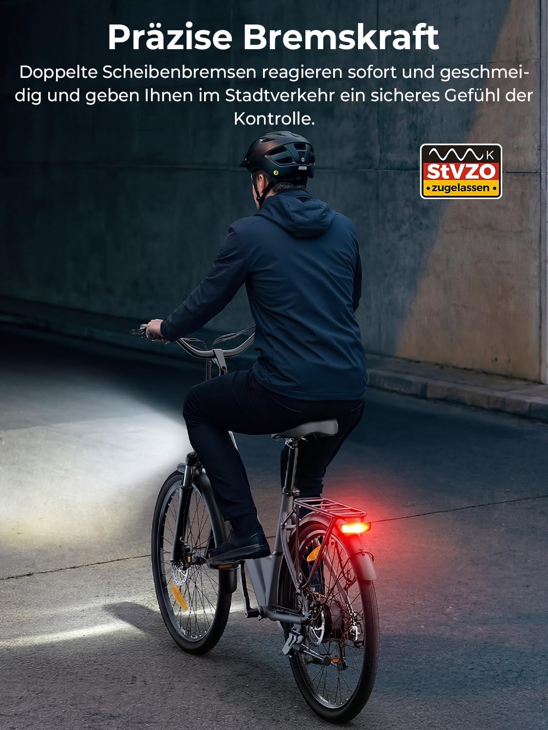 • Bremsenart: Mechanische Scheibenbremse & E-Bremse