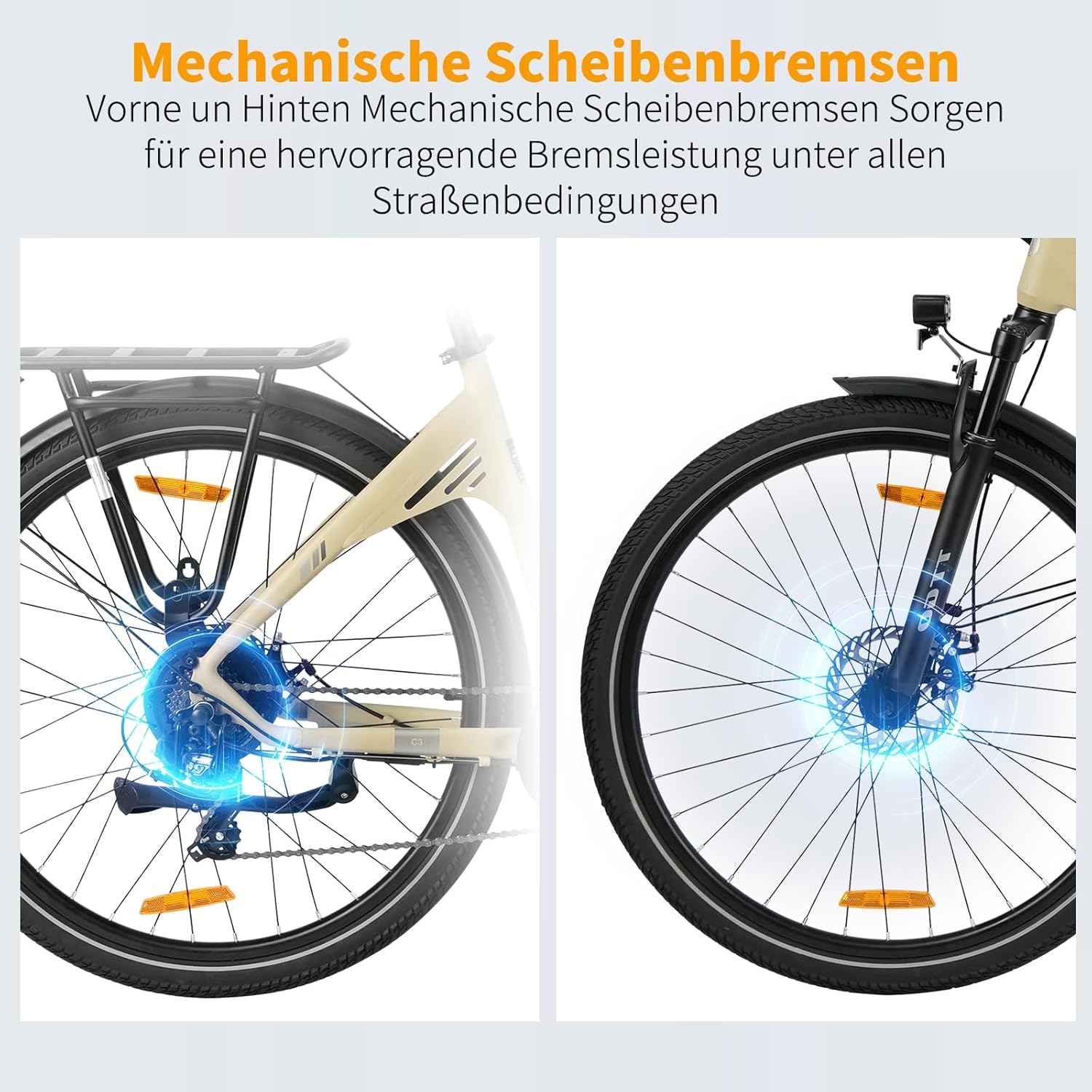 - 【LCD-Display und Beleuchtungssystem】Dieses 28 Zoll Elektrofahrrad verfügt über ein LED-Display, das klare und zuverlässige Datenanzeigen (Geschwindigkeit, Akkustand, Gang, Fahrmodus, Kilometerstand) liefert. Außerdem verfügt es über helle LCD-Scheinwerfer, ein rotes Rücklicht und beidseitige Reflektoren. Das hervorragende Beleuchtungssystem verbessert die Sichtbarkeit bei Nacht und erhöht die Sicherheit bei Fahrten am Abend.