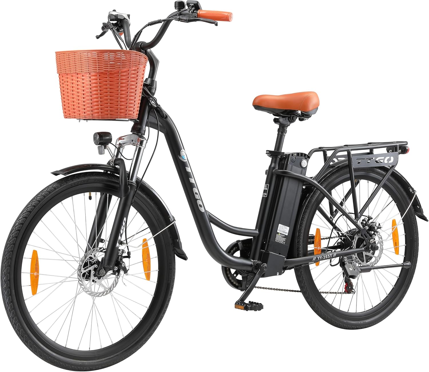 - 【Praktischer Frontkorb】Ausgestattet mit einem geräumigen Frontkorb bietet dieses Damen E-Bike ausreichend Platz für Einkäufe, Taschen oder persönliche Gegenstände – perfekt für den Alltag und entspannte Ausflüge.